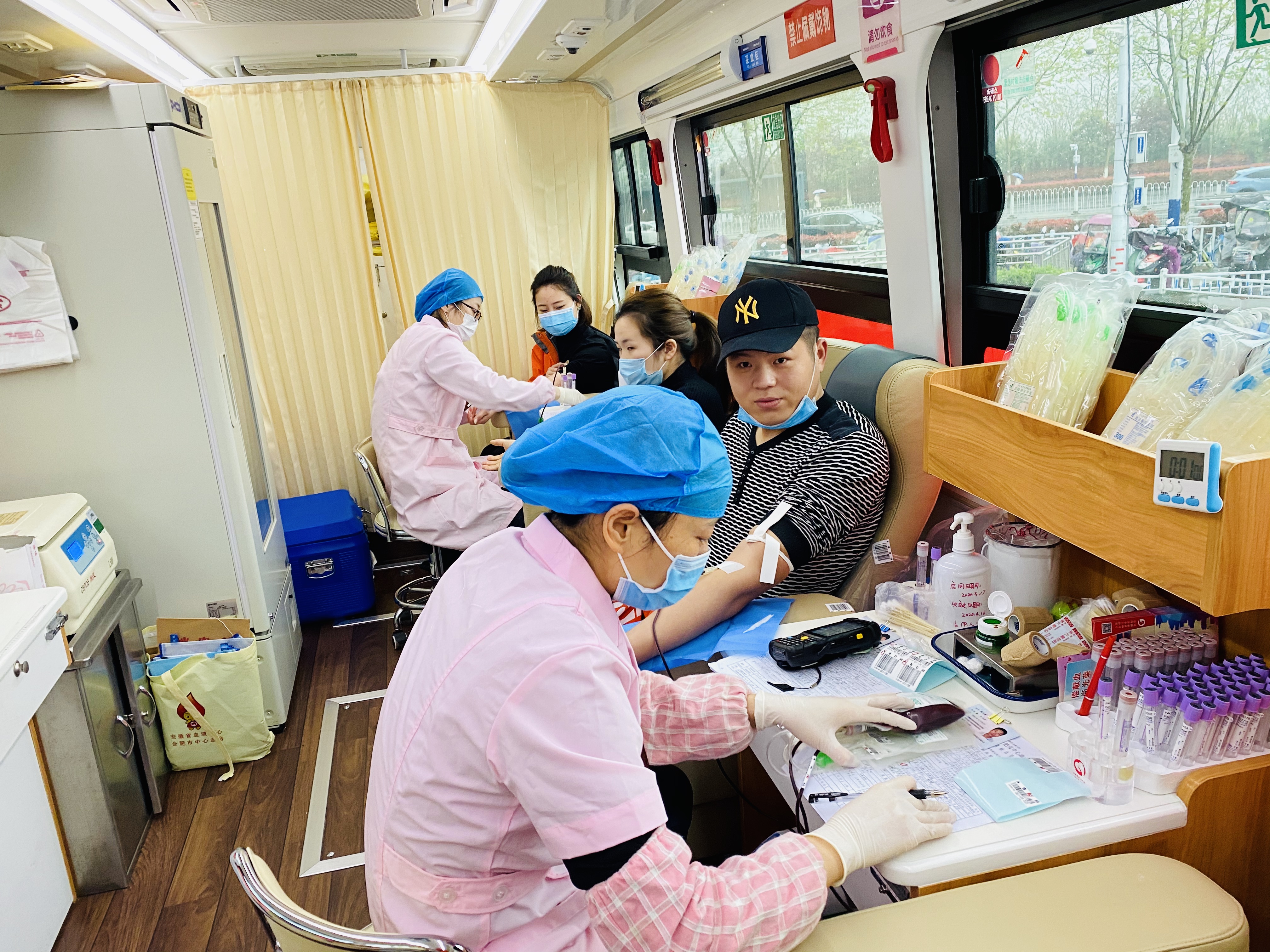 志愿者們?cè)卺t(yī)護(hù)人員的指導(dǎo)下進(jìn)行體溫測(cè)量、體檢、抽血化驗(yàn)后,開(kāi)始采集血液。