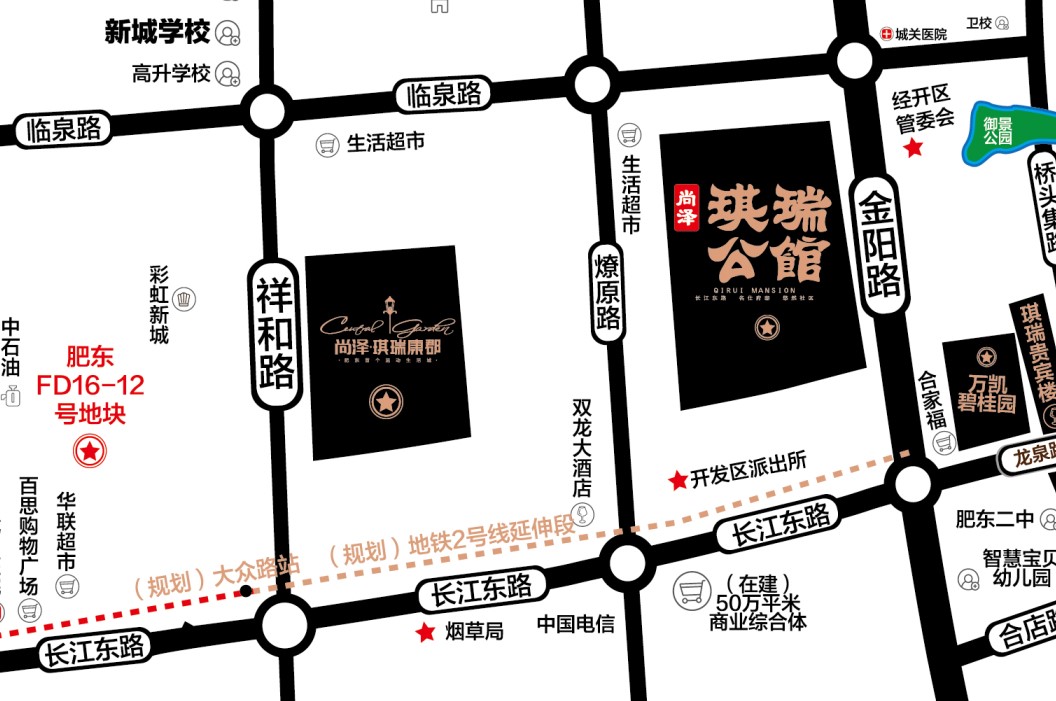 尚澤琪瑞康郡位于合肥市肥東縣長江路與祥和路交口,鄰臨長江路路主干道,龍?zhí)粮咚俾范?、肥東高速路段、多路公交線路直達(dá)小區(qū),公交立體交通四通八達(dá)。交通上的巨大優(yōu)勢,無與倫比,而肥東新城板塊也在迅速生長漸漸成為繁盛的重要區(qū)域。