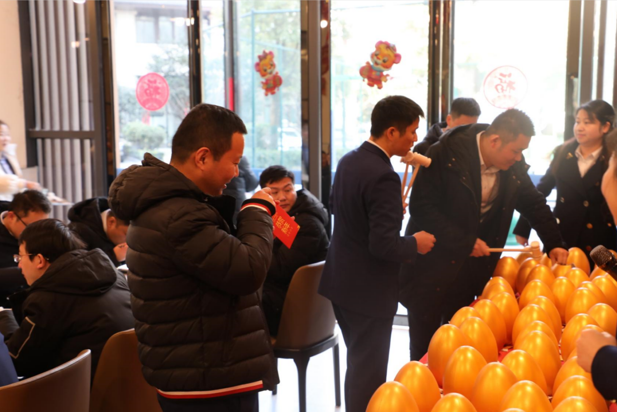 此次迎新活動(dòng)的高潮時(shí)刻必然是驚喜元“蛋”環(huán)節(jié)。企業(yè)管理中心的同事提前在金蛋中放置了各種驚喜,有奶茶、彩票、公仔、電影票等,當(dāng)然最讓人期待的還是現(xiàn)金紅包。紅包內(nèi)金額不等,都是寓意吉祥的數(shù)字。小伙伴們滿懷期待“敲”開(kāi)屬于自己的好運(yùn)。